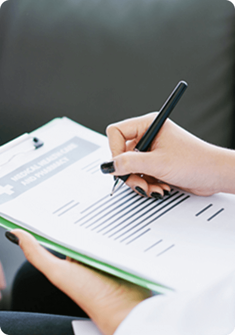 ご来院時には、まず受付をお願いします。お渡しする問診票に、現在の痛みや症状などの記入をお願いします。